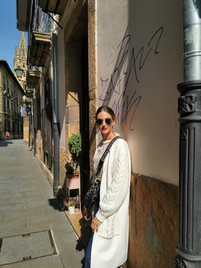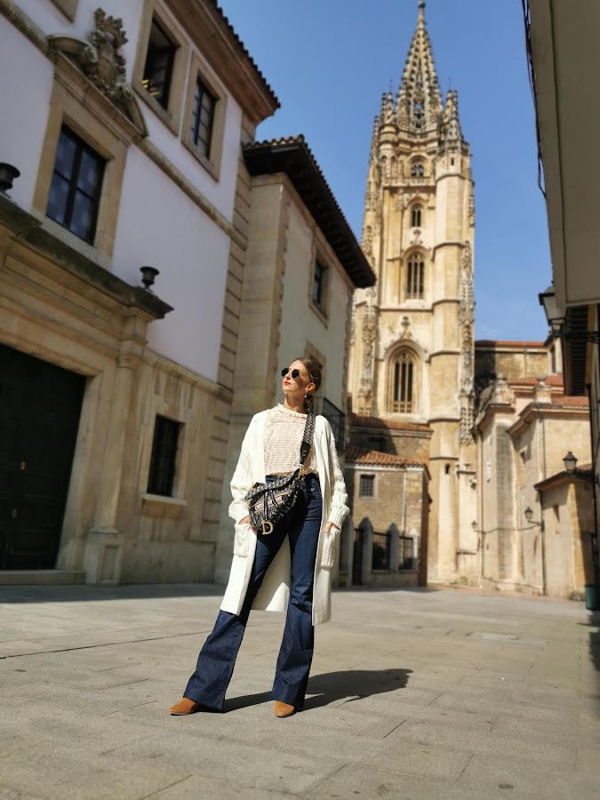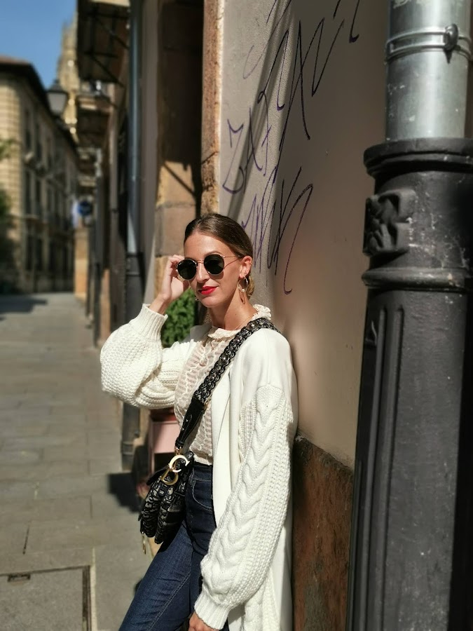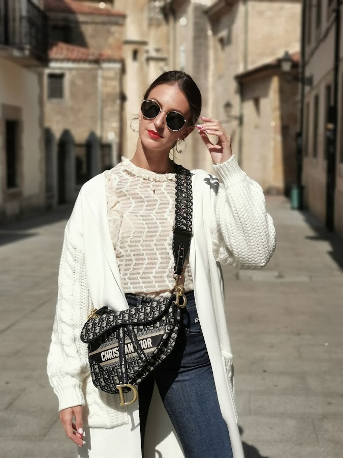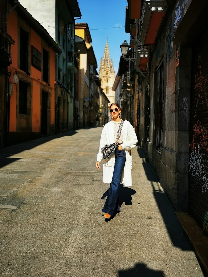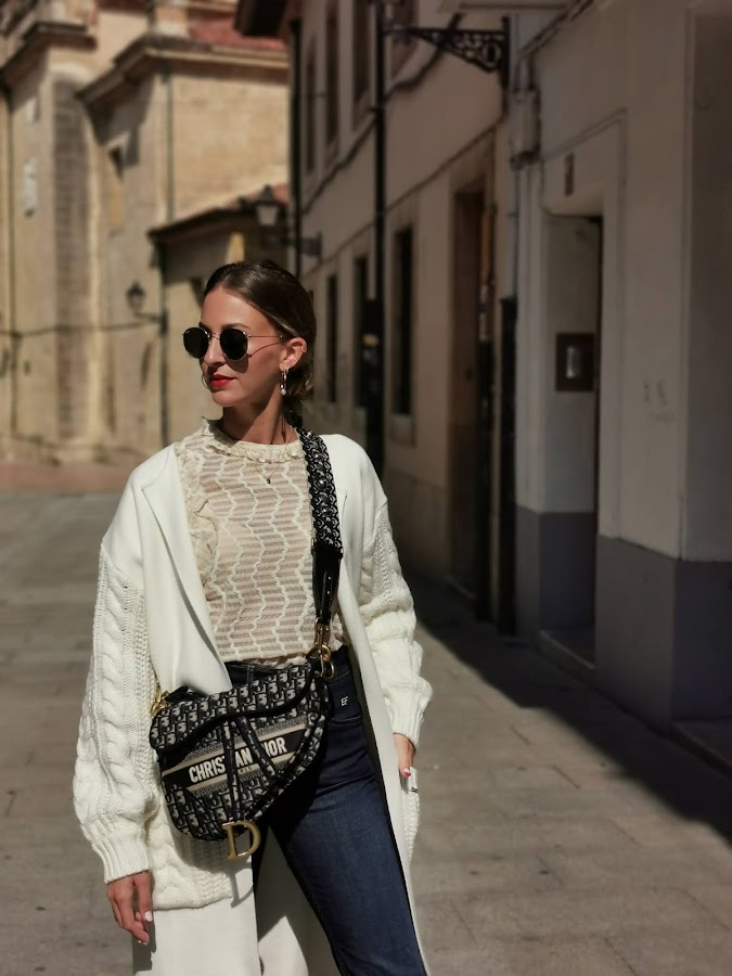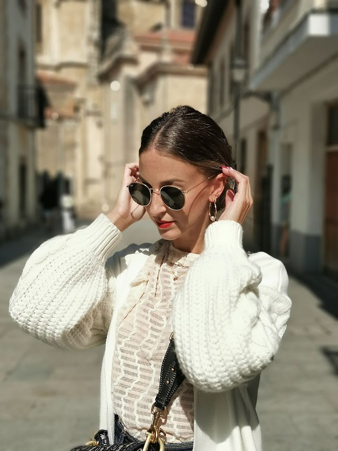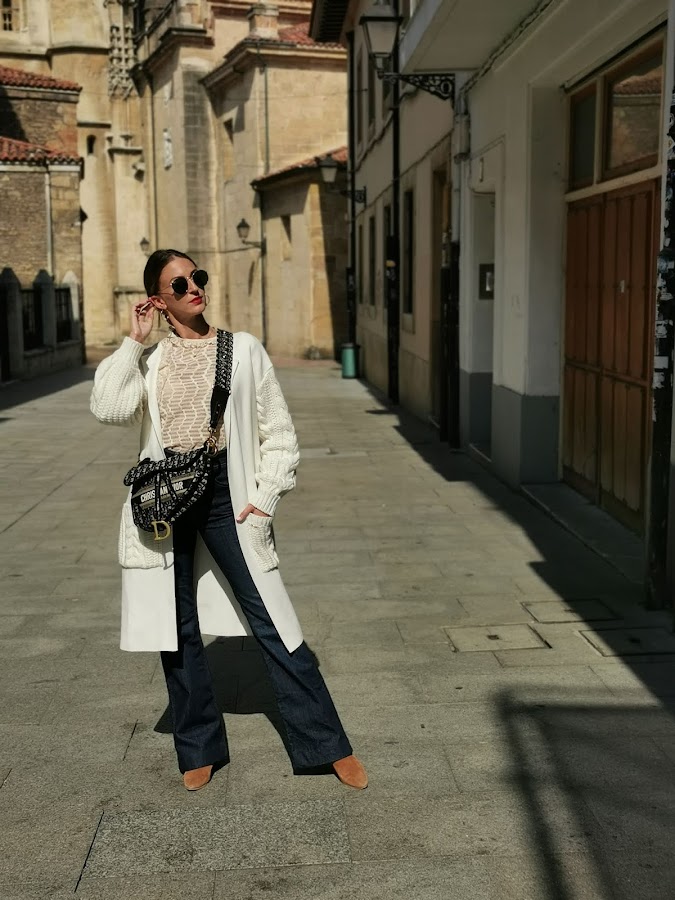 Es un total look de Salsa que no me dio tiempo a enseñaros antes del confinamiento y al salir tampoco ya que era primavera y este look es perfecto para ahora en Otoño. Los vaqueros estilo wide leg que son tendencia total esta temporada y además están personalizados con mis iniciales ya que durante febrero estuvieron personalizando prendas en la nueva tienda que han abierto en Gran Vía. La blusa es preciosa con un toque transparente y el abrigo me tiene completamentamente enamorada, vamos, básicamente fue amor a primera vista.