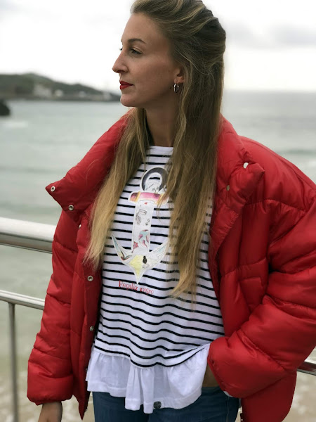 Lógicamente hay que ir abrigados en esta época y para ello estrené este anorak rojo de Stradivarius y una camiseta ideal de Regaliz negro, que es superfavorecedora.