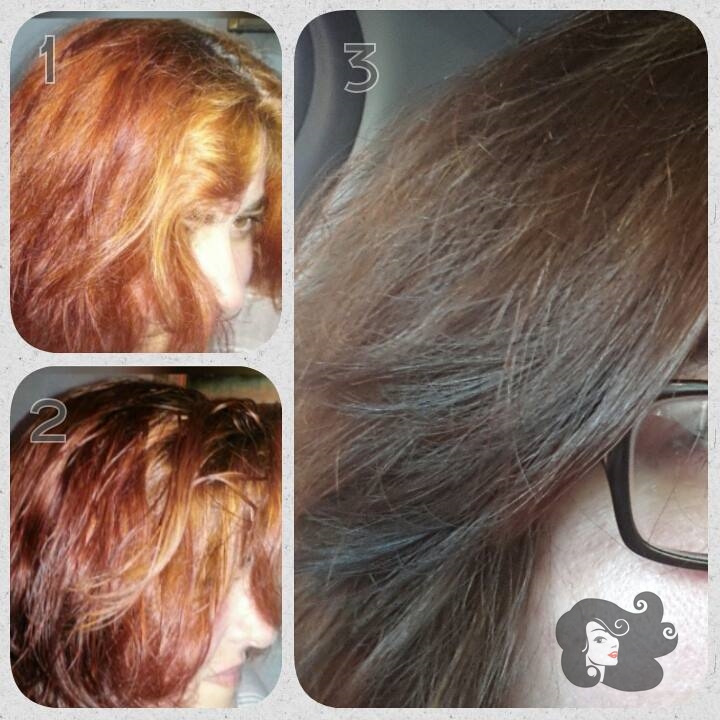 Desde hace un tiempo me tiño el pelo de colorado, yo sola en casa y sin dramas, pero llegó un momento que mi rosácea (si, tengo rosácea) empeoró y mi cabello colorado no hacía más que remarcarla, entonces decidí cambiar el color, pero en vez de ir a una peluquería lo hice por mi cuenta, lo decoloré, quedó naranja y lo teñí de castaño, pero no sabía que tenia que ser ceniza, así que quedó un castaño naranjón algo extraño y algo maltratado, me puse de todo en la cabeza y mejoró un poco, así que decidí intentar con aceites, hasta de oliva me puse, usé productos varios y mejoró, pero mi cabello no fue el mismo, no pasó ni un mes y decidí volver a decolorar!