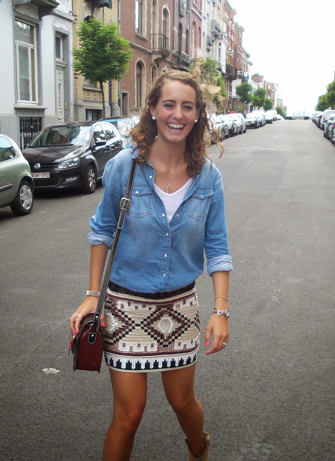 Falda,Zapatos: Zara/ Camisa,Camiseta : Pull & Bear/ Bolso:Essentiel/ Colgante: Tiffany & Co.