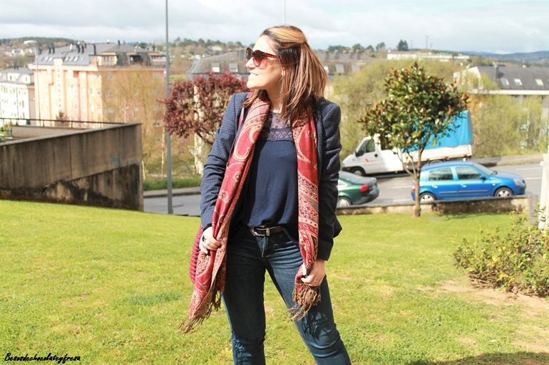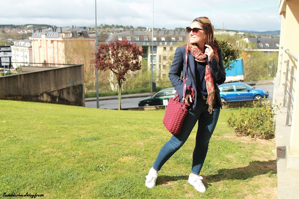 Ahora que las lluvias y el frio han vuelto, dos colores que casan a la perfección son el azul marino y el burdeos. Toca un mes revuelto de altibajos de temperaturas y en el outfit de hoy la base del mismo está en el azul marino, básico para cualquier ocasión donde el toque elegante lo aporta la blazer.