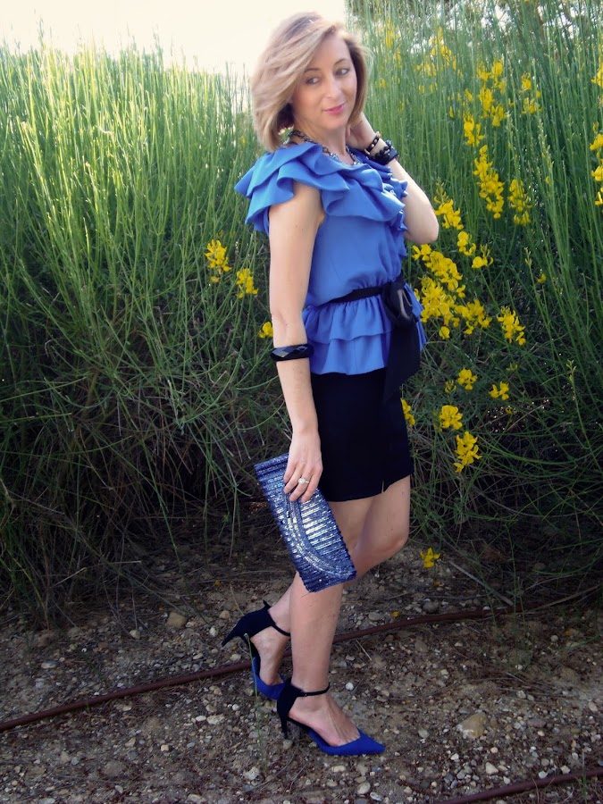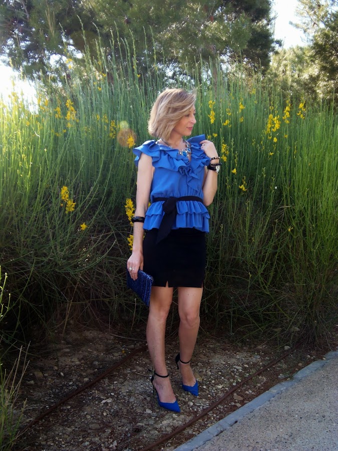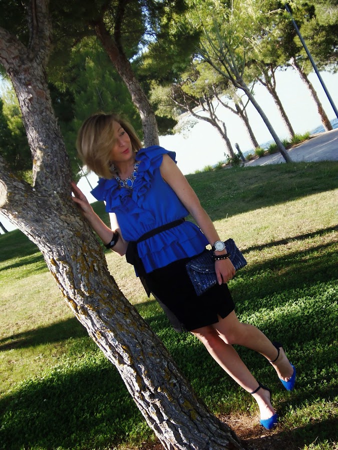 The outfit today I combined the Klein blue with black which is a combination that never fails, there is always good and very elegant.