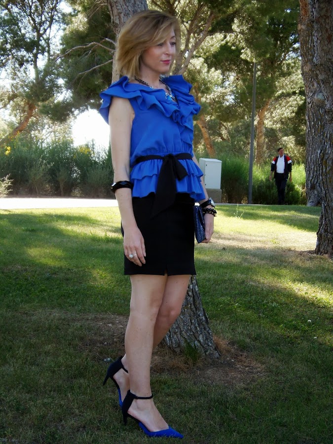 En el outfit de hoy he combinado el Azul klein con negro que es una combinación que nunca falla, siempre queda bien y muy elegante.