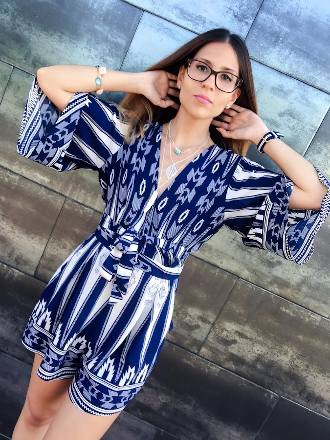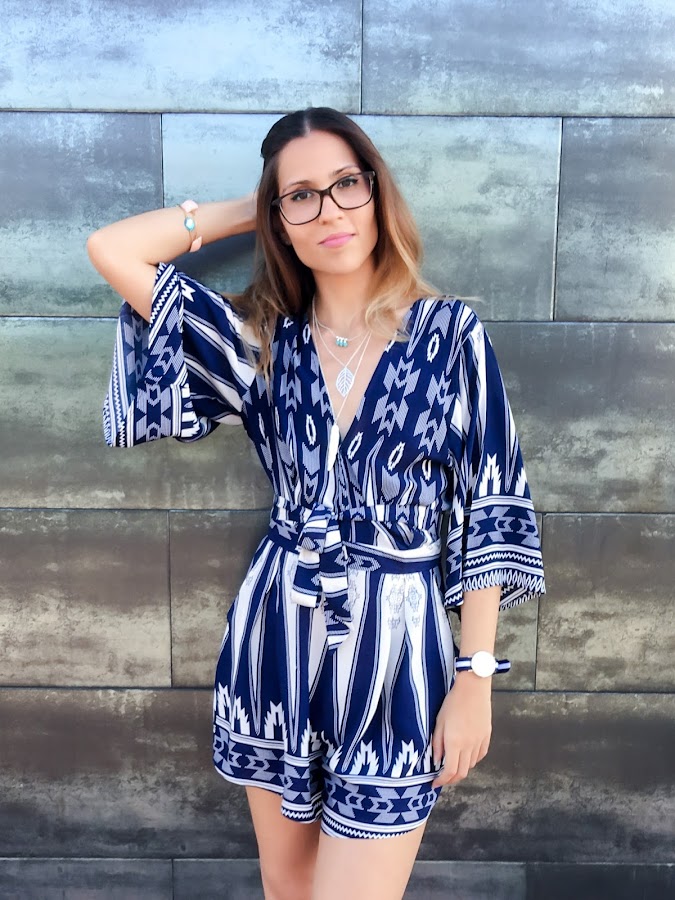 Soy una enamorada de la tienda LOOKBOOK STORE, tengo que reconocerlo, pero es que toda su ropa es tan absolutamente preciosa!!! Hoy os enseño un mono de estampado étnico azul marino y blanco. Con un escote muy sexy, que incluso puedes abrirlo un poco más, ya que lleva un broche para que el escote llegue más abajo. Lleva un cinturón de tela con el mismo estampado que puedes anudar a la cintura. La parte de atrás es de las que a mí me gustan, enseñando espalda con una apertura que queda súper sexy!