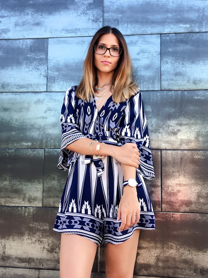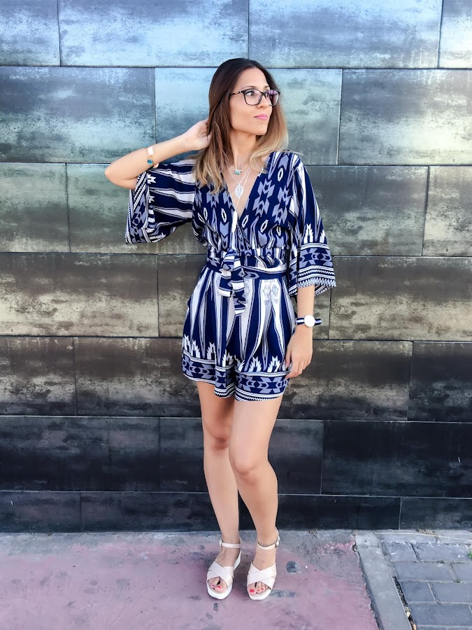 I am a lover of LOOKBOOK STORE, I have to admit it, but is that all their clothes are so absolutely beautiful !!! Today I teach a navy and white ethnic print romper. With a very sexy neckline, you can even open a little more, because it takes a snap to get below the neckline. With a belt fabric with the same pattern that can tie at the waist. The back is where I like teaching back with an opening that is super sexy!