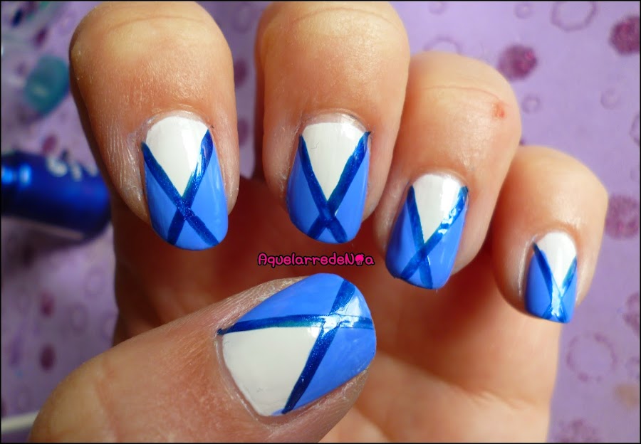 y a continuación con el propio pincel del color lavanda hacemos una "francesa" o una especie de triangulos que terminen en la punta. (no os preocupeis que hay foto mas adelante)