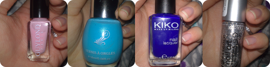 Esmaltar las uñas de los dedos anular y corazón de un color muy clarito. Yo para ello utilicé el tono más claro del set "purple" de 5 esmaltes de Guylond París.
