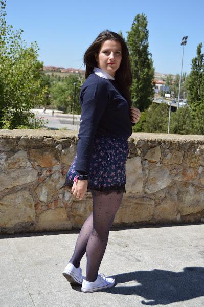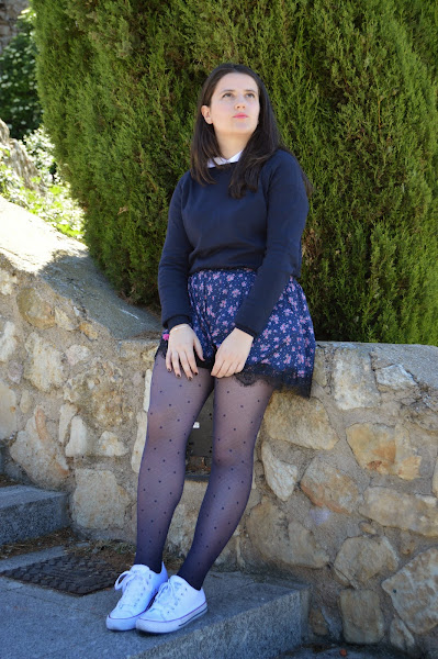 Estas medias aún no las había enseñado por aquí, y es muy raro porque me las pongo muchísimo, pero no había dado la casualidad de hacer las fotos. Me encantan porque ¡tienen puntitos, jaja! y además también rombos, y no conforme con eso son azules que me ayudan a salir de mis amadas medias negras. ¡Un acierto total!