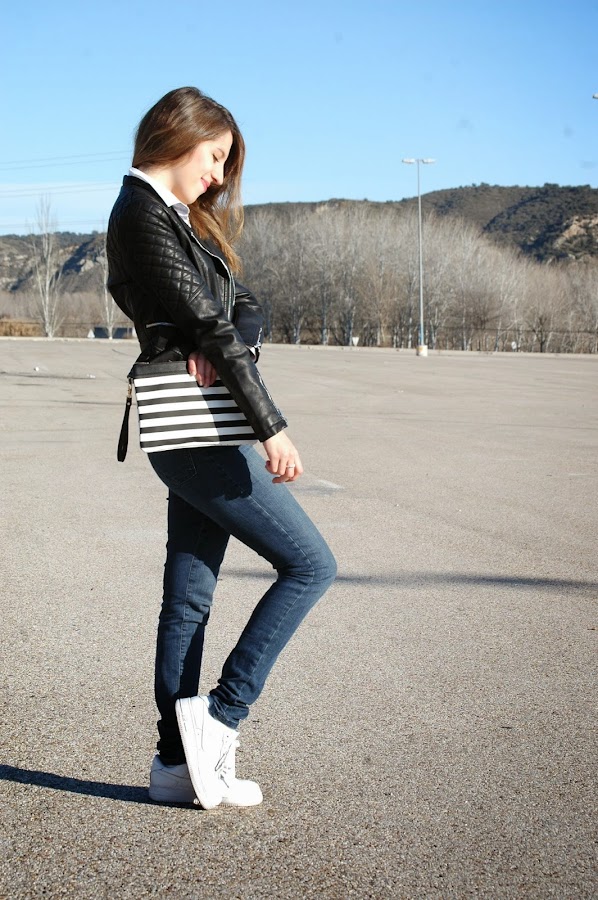 Muy buenos días! Aquí os enseño mi primera compra de rebajas, un jersey a rayas de Zara con un largo perfecto para leggins. Como véis me voy animando con las zapatillas en los looks, éstas son de Nike, para sacarlas gran partido, creo yo... El resto ya lo conocéis, el abrigo no puede ser mejor compra porque se adapta a cualquier estilo de outfit, no creéis? A pesar de mi sonrisita hacia un frío q ...