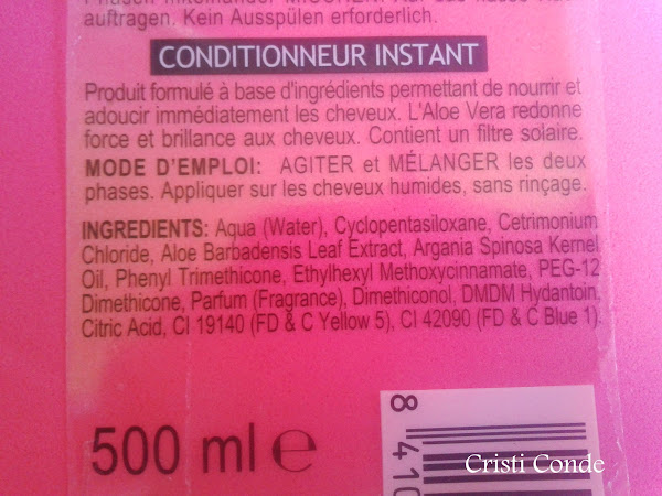 Este producto me a gustado bastante, suelo usarlo para ayudar a desenredar el cabello y para eso me encanta. En la botella pone que fortalece y da brillo, lo de fortalecer pues no se puede pero no e notado nada en especial pero brillo si que da. Es un producto que al contrario que otros no deja residuos en el cabello y no lo apelmaza, lo que es genial por que si no ya estaría en la basura jajaja. Como ya os e dicho para lo que suelo usarlo es para ayudar a desenredar el cabello cuando salgo de la ducha o cuando me cuesta cepillarlo, es lo que pasa por tener el cabello como el de un león jajaja. Lo que también tengo que decir es que deja el cabello muy suave cosa que me gusta mucho muchísimo.