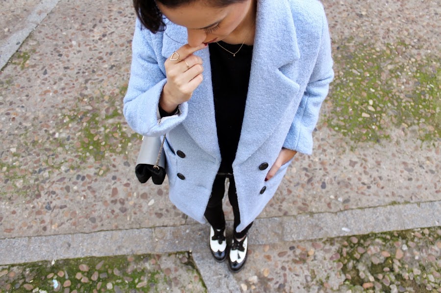 El abrigo azul celeste vuelve a ser tendencia una temporada más sobre todo gracias a GUCCI quien incluyó esta prenda en su colección otoño/invierno 2014/2015 presentada en la Semana de la Moda de Milán el pasado mes de febrero. En el look que os enseño hoy el protagonista indiscutible es esta prenda, un abrigo azul celeste de Bershka que me pareció perfecto sobre todo por su corte, recto con bolsi ...