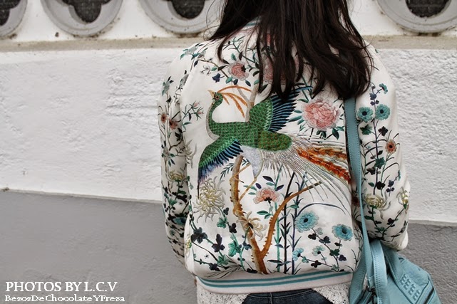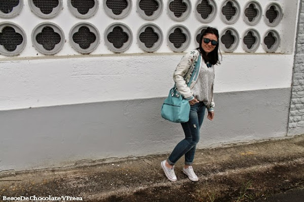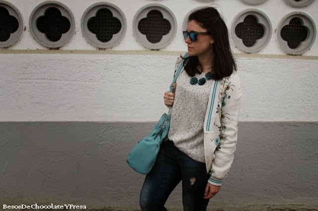 I wear jeans with mottled sweater, talk, bomber with animal and floral motifs in the same tone as the bag and necklace in dark contrast to give you something to look.I hope you liked it, thank you for your comments and views, Happy Day !!