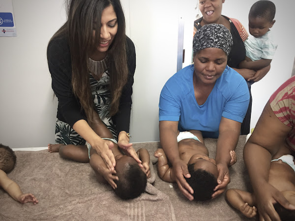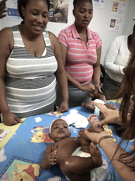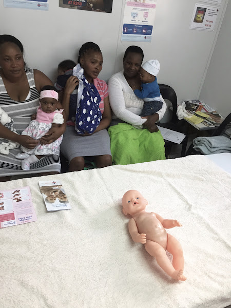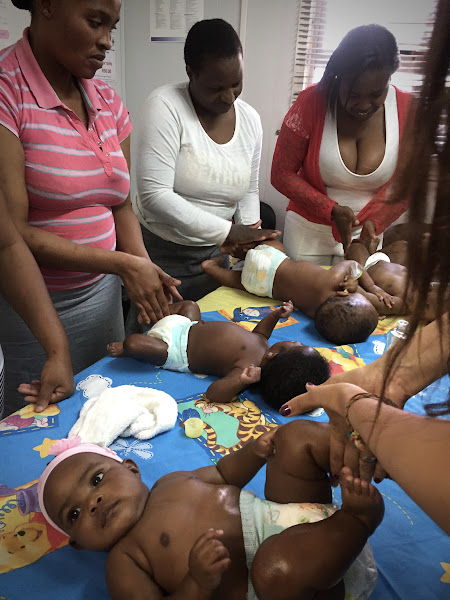The second outing was in Unjani Hilbrow. In all my outings, I first explained how to do the massage in the baby dummy that I brought along and then we all did it on the babies together. I see how they do it and also give them extra tips.