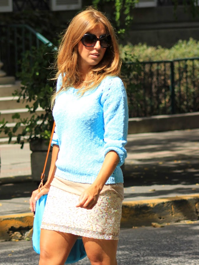 Sweater (old): Bass20 / Sequined skirt (old): H&M / T-Shirt (old): Stradivarius / Heels: Zara / Bag: Mouton