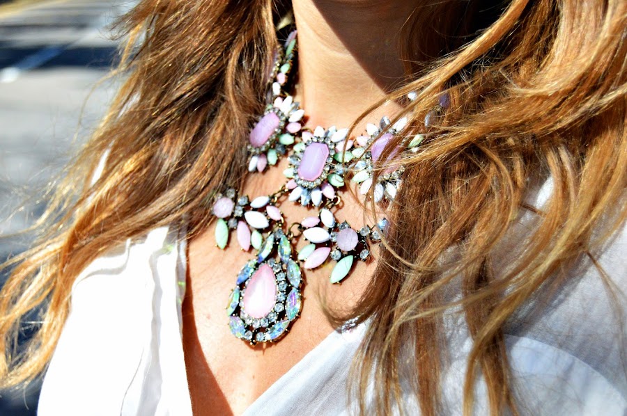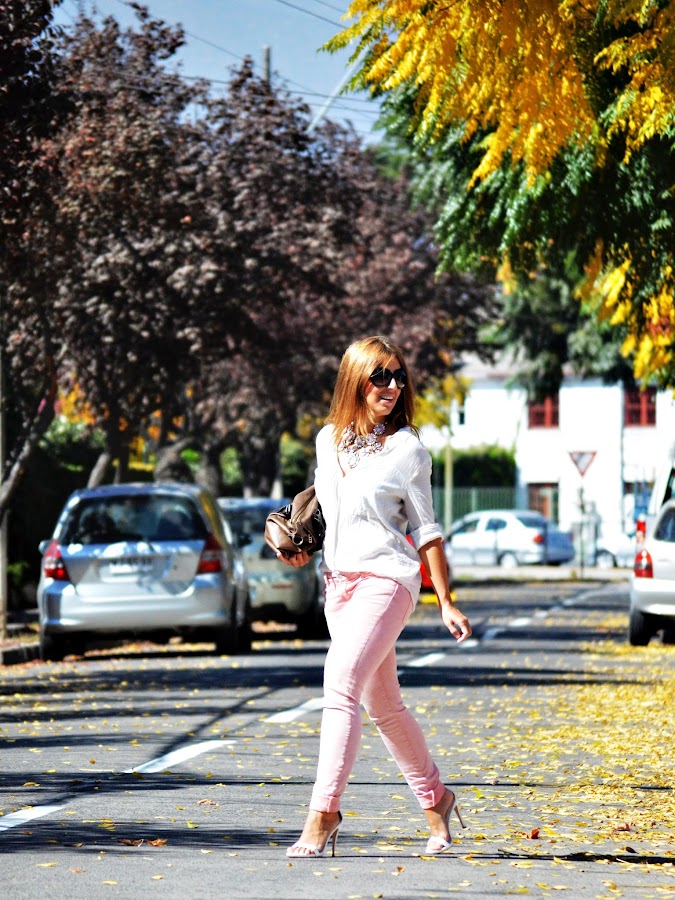There"s nothing like pastel tones to look feminine. And among all, the babypink is the king. When I was younger I hated this colour, it seemed too girly for me. But now I love it and I think that it suits all of us. In this case I didn´t want to risk it with too much colours and I chose to give the outfit a special touch with this statement necklace in the same tone of the jeans, which I love! Happy week!