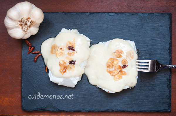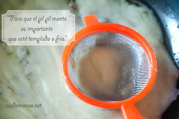 Cuando ya haya montado completamente iremos añadiendo poco a poco el resto del aceite... y c"est fini, así de fácil es hacer un buen pil pil.