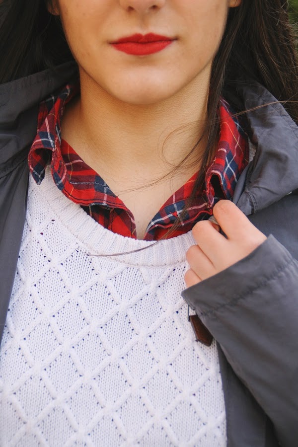 El outfit que os enseño es la opción definitiva para un día de lluvia. Botas de agua, chubasquero, jersey con camisa y bufanda. Todo ello con mis prendas absolutamente favoritas de mi armario. Un conjunto que sin tener misterio alguno es de mis favoritos.
