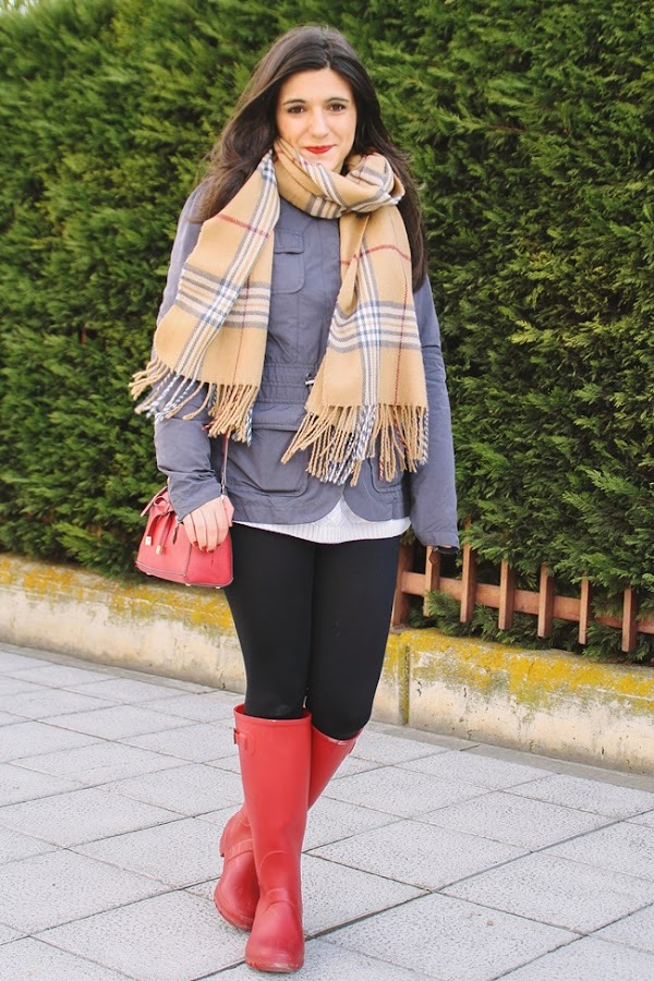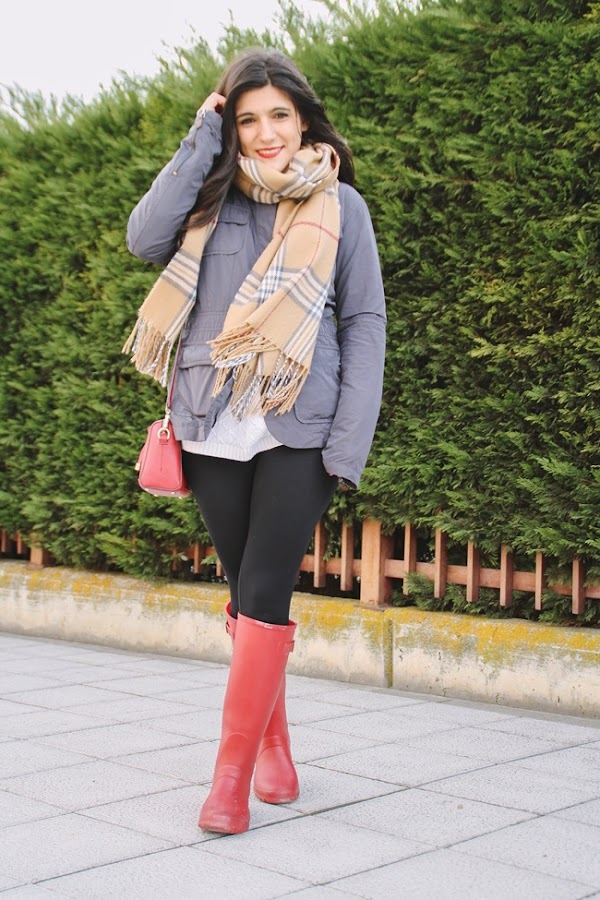 No solo tengo que decir que me encantan los básicos como jerséis blancos, leggings y bufandas de cuadros, sino que me encantan los días de lluvia y celebro cada día que veo la nubecita con gotas en el icono del tiempo. ¿Que por qué? ¡Porque las botas de agua son mi spirit animal! Me encantan mis botas y me encanta tener la excusa para llevarlas.