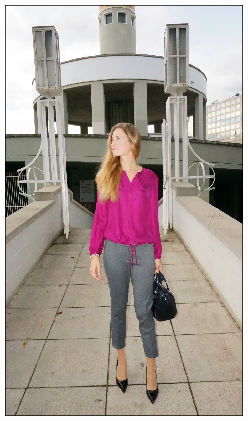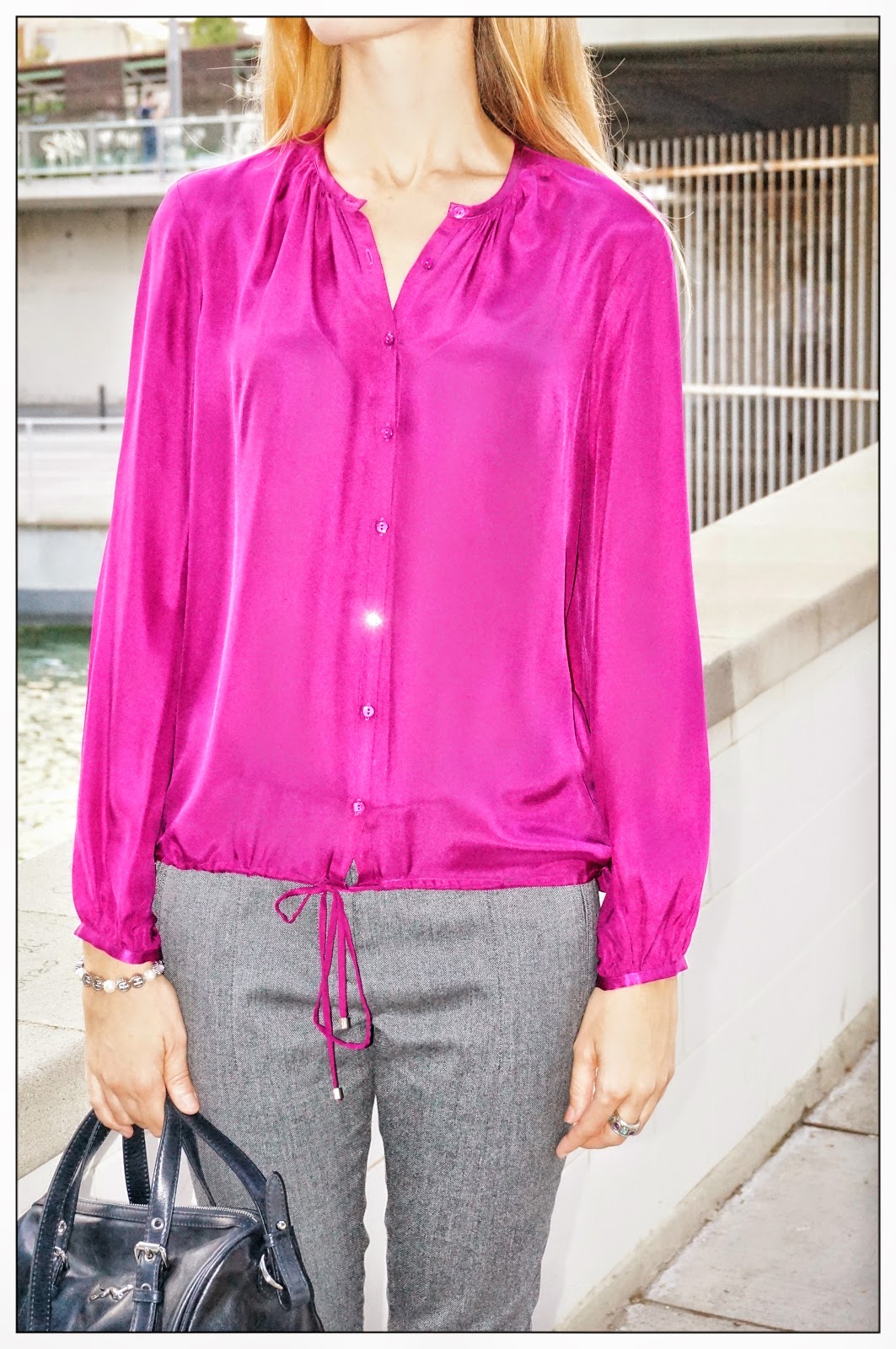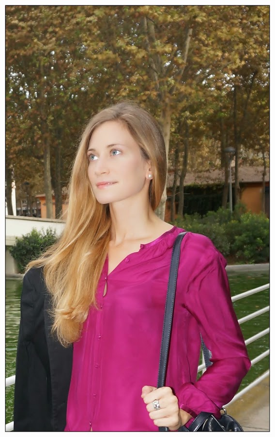 Como prendas base llevo unos pantalones capride ZARA, que tienen aproximadamente 2 años, y una camisa de delicioso tacto sedoso de la colección SS?14 de Massimo Dutti. Los pantalones de este corte no traen problemas con la altura, mientras que la camisa ligeramente holgada de puños y bajos ajustables cumple la norma para los brazos más largos.As basis garments I wear ZARA capri pants that I bought 2 years ago, and a delicious silky shirt from Massimo Dutti SS"14 collection. These cropped pants fit great to any height, while the slightly baggy shirt and adjustable cuffs meet the standards of longer arms.