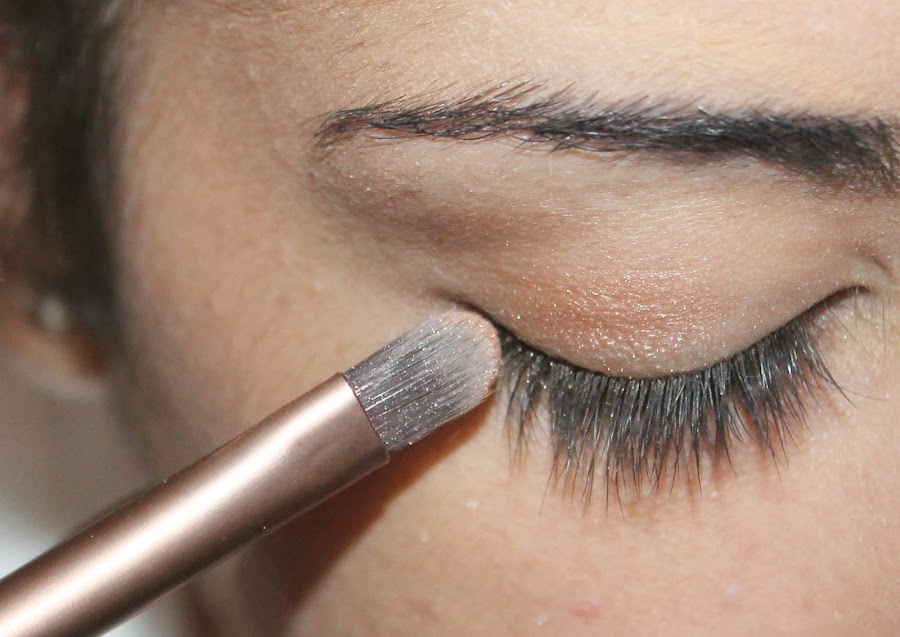 Después utilizo el marrón claro de al lado Half baked. Me gusta mucho porque tiene un poco de brillo y es el que le da un poco de color al maquillaje. Lo pongo solo en la esquina del ojo y sin sobrepasar la cuenca.
