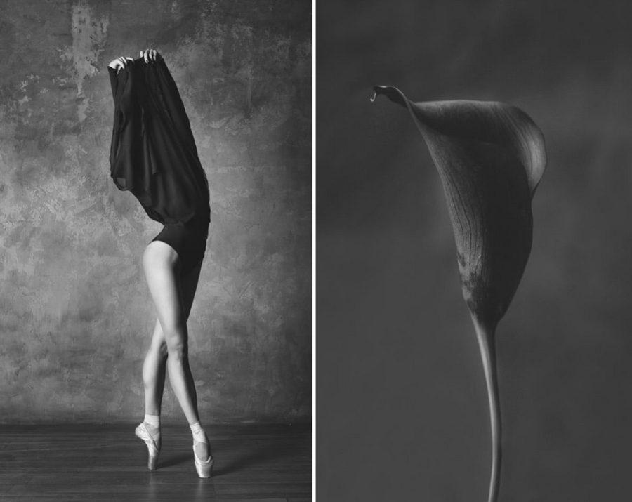 Estas innovadoras fotografías en blanco y negro muestran a bailarinas junto a flores que parecen imitar sus movimientos. Es una increíble muestra de cómo el arte y la naturaleza están más conectados de lo que creemos. Artemyeva fotografió primero a cada bailarina, pidiéndoles ejecutar diferentes movimientos dinámicos. Después, vino el desafío. encontrar una flor que complementara cada pose. La fotógrafa rusa exploró cientos de ejemplares hasta que encontró las flores que estaba buscando.