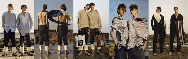 El joven ingles Jonathan Andersen como nuevo director creativo al frente de la firma Loewe, nos ofrece una colección muy juvenil y renovada con cierto aire romántico que nos trasladas a para paseos al atardecer por cualquiera de las bucólicas playas de la Bretaña francesa.