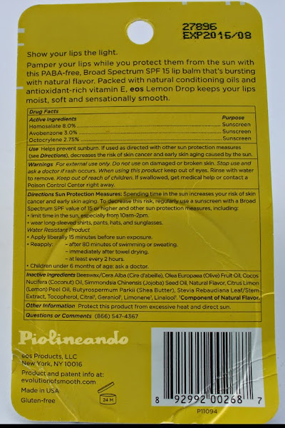 Tanta fama tienen los bálsamos labiales EOS que al final he tenido que probar uno de ellos. Entre todos los que había de diferentes colores y olores, me decidí por el de limón ya que me gustan mucho los olores cítricos, me parecen muy frescos y este así es.