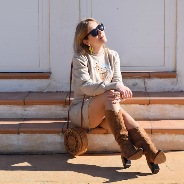 La sudadera es una prenda muy versátil, porque puedes conseguir looks muy diferentes según cómo la combines. Con vaqueros para un día informal. Y con mini como el de este día para un lokk más divertido y fuera de mi zona de confort.