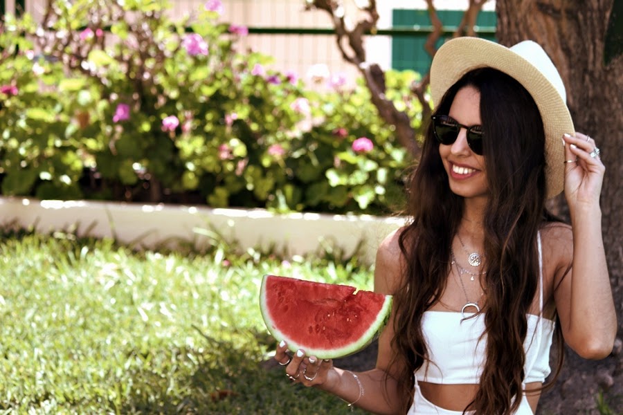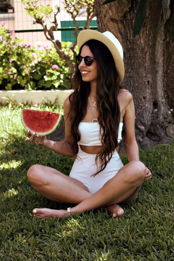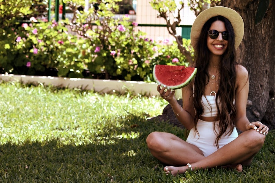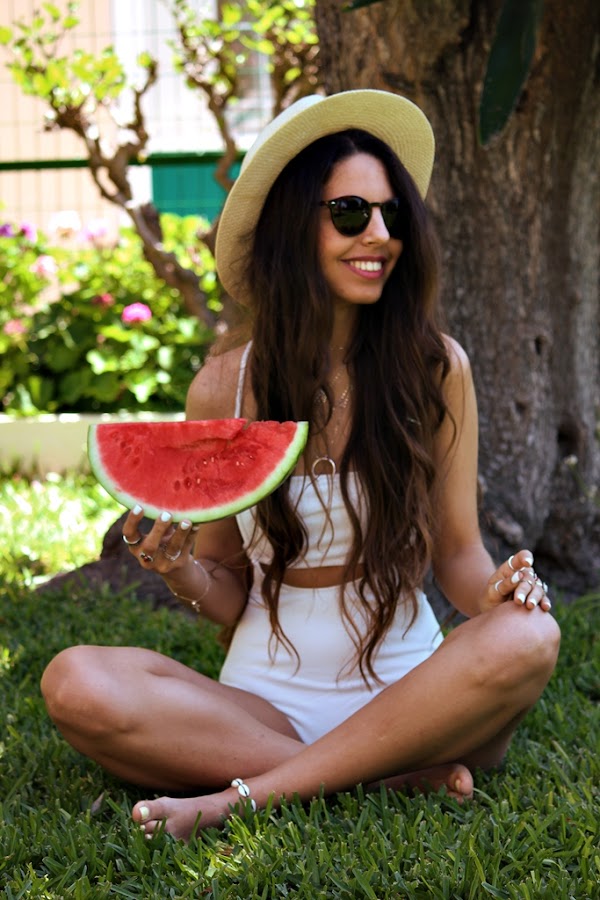 7 Bañadores para 7 días, uno de ellos es este y quería que vieseis más fotos con él. Como os dije es de Zaful y se divide en dos partes. La de arriba tipo top, con esponjitas y super combinable, como por ejemplo un peto vaquero. Y la de abajo con las tiras cruzadas por la espalda. Lleva forro por dentro pero sólo por la parte de delante. El tejido es de tela, el precio es de 1299$ y lo hay de más colores. AQUI Podréis ver mi video enseñando más ropita de Zaful. Lo combiné con mi sombrero favorito de Springfield. Los collares son una pasada. Vienen todos juntos, de menor a mayor tamaño y también son de Zaful. Los anillos los podéis encontrar en Gamiss son un pack y están genial de precio. Y por supuesto un trozo de sandía. Cuando voy a la playa o pisci nunca me falta fruta, es muy sana y refresca un montón. Como siempre, os dejo los links directos debajo de las fotos. Os dejo AQUI mi Instagram para que sigáis todos mis pasos :)