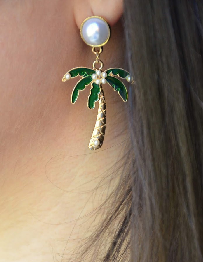 Por otro lado os enseño mis nuevos pendientes de palmeras de Dresslily. Fueron amor a primera vista y me parecieron perfectos para este bañador.