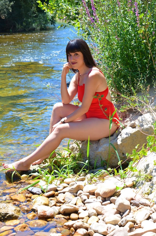 El modelo de hoy es este bañador, super cómodo, en un color rojo super vibrante. El color fue una de las cosas que más me llamó la atención así como el corte de los extremos del bañador con esas olas.