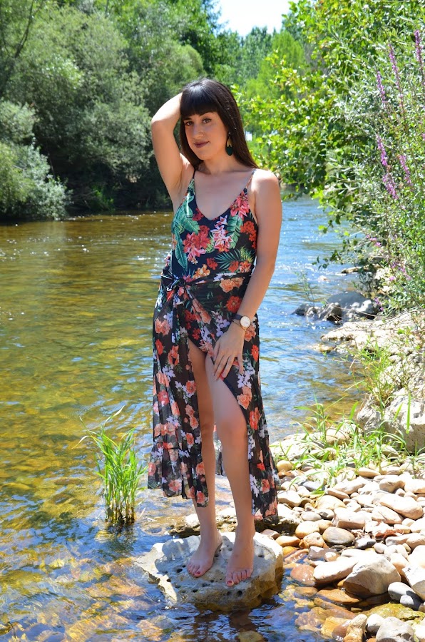 No me quería ir a la cama sin antes enseñaros este precioso conjunto de bañador y pareo, de estampado tropical, ambos de Shein.