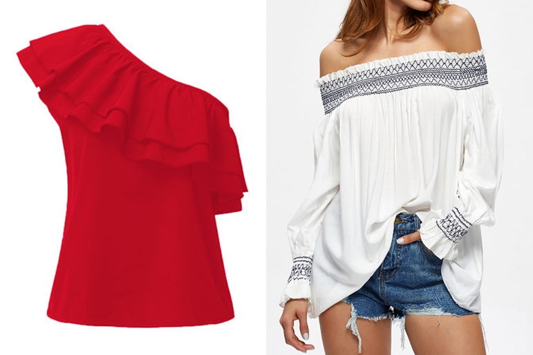 Los escotes asimétricos y bardot también inundan las perchas para mostrar una silueta sexy dejando los hombros al descubierto, ya sea uno o ambos.