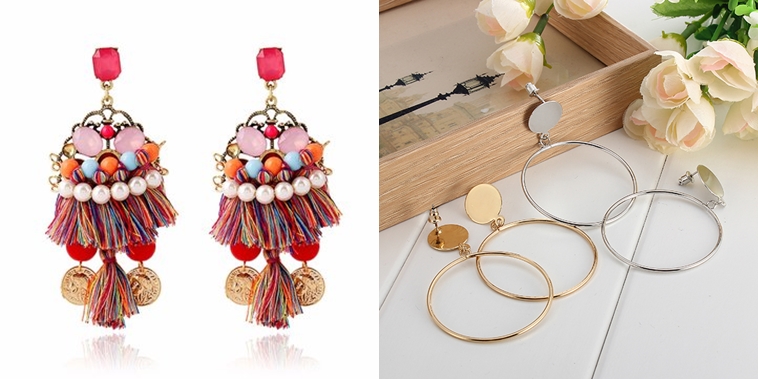 Si queremos que todo el protagonismo del look se centre en los complementos, debemos hacernos con unos pendientes tipo XXL. Cuanto más grandes, vistosos y originales mejor. Con pompones, aros metálicos, extra largos de metal...