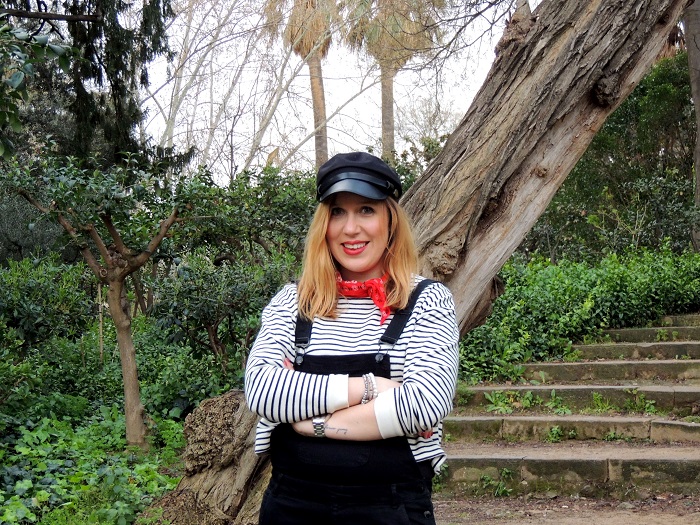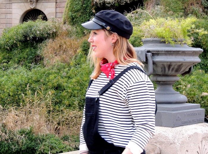¡Buenos días chicos! Hoy volvemos a mis días por Barcelona, hoy con un look que me encanta, ya sabéis lo fan que soy de los petos y de las sudaderas de rayas, en cuanto me hice con este peto en negro de Primark sabía que lo vestiría con la sudadera crop de Zara, de hace ya varias temporadas, el primer look que me vino a la cabeza era un rollo más deportivo con las converses y una cazadora vaquera oversize, pero el día amaneció lluvioso y según me estaba vistiendo recordé la bandana que me había comprado el día anterior por el Portal de lÀngel y el outfit tomó otro matiz, con un toque "chic parisino", cambio de zapatillas por los botines moteros y tachán un look con mucha personalidad, cómodo y versátil. Las fotos las hicimos por el parque de la Ciutadella y alrededores, nos llovió mucho y hacía frío, pero lo que disfruté ese día y lo que pude reírme...no tiene precio. Espero transmitiros ese buen rollo y que os guste el mix de hoy.