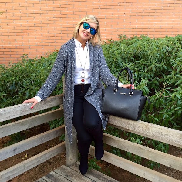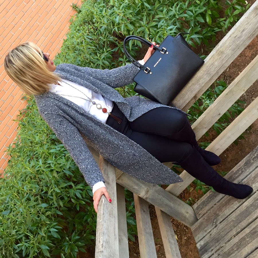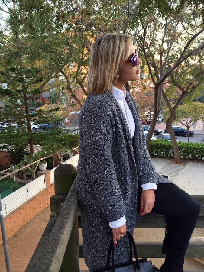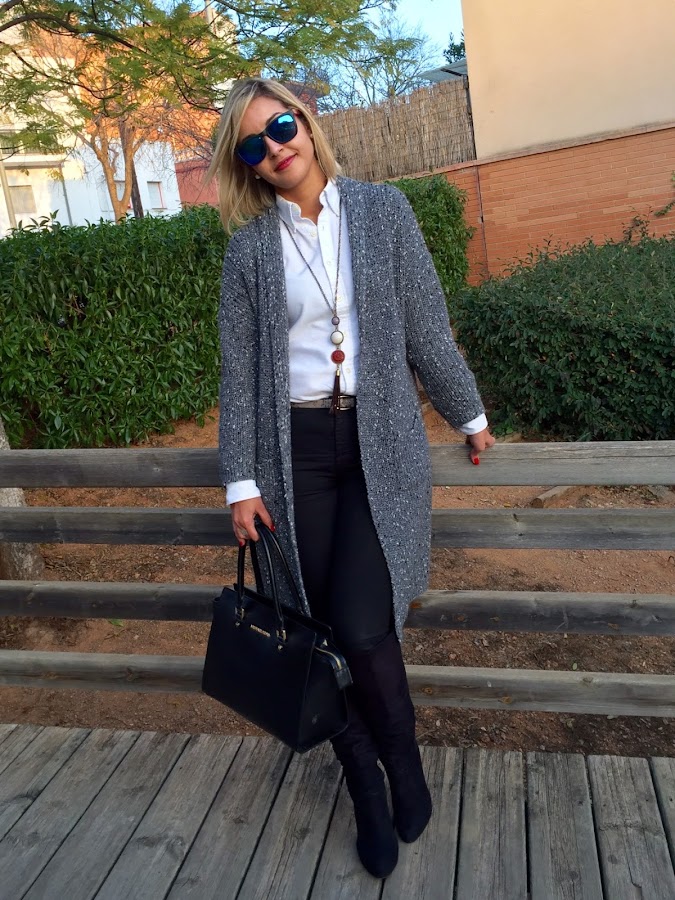 Today I show you an outfit with basic clothes that is the kind of outfits that I like it more. When I saw this long grey jacket of Shift Store, I fall in love and I think that this kind of jackets we can take profit. I wore it with black trousers and white shirt. The accessories of the outfit were my bag of Michael Kors, black boots over the knees and my long boho necklace.