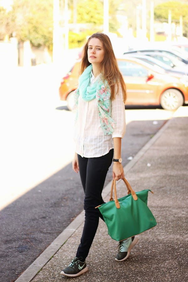 Today I show you how to wear the same look with diferent complements. On both I wear the same shirt and jeans. The first look is simple I wear my new necklace from Mystic Dreams Factory(here), I really like it. When you see it you will understand me.I wear the same combination of jacket and boot but I love it. The second look is Sporty Chic, more spring-like.