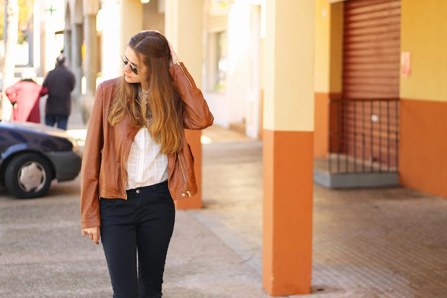Ayer empezó Marzo y eso quiero decir que pronto será primavera. ¡Que ilusión! En el post de hoy os enseño como tener dos look diferentes cambiando los accesorios. En los dos looks llevo la misma camisa y jeans. En el primero os enseño un look básico en tonos marrones y con mi nuevo collar de MDF(aquí) que me gusta mucho.Cuando lo veáis me entenderéis. Llevo la combinación de chaqueta y botas igual que la semana pasada pero es que me encanta. Y en el segundo os enseño un look Sporty Chic, más primaveral.
