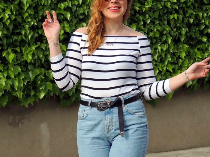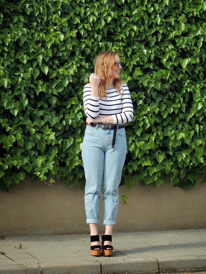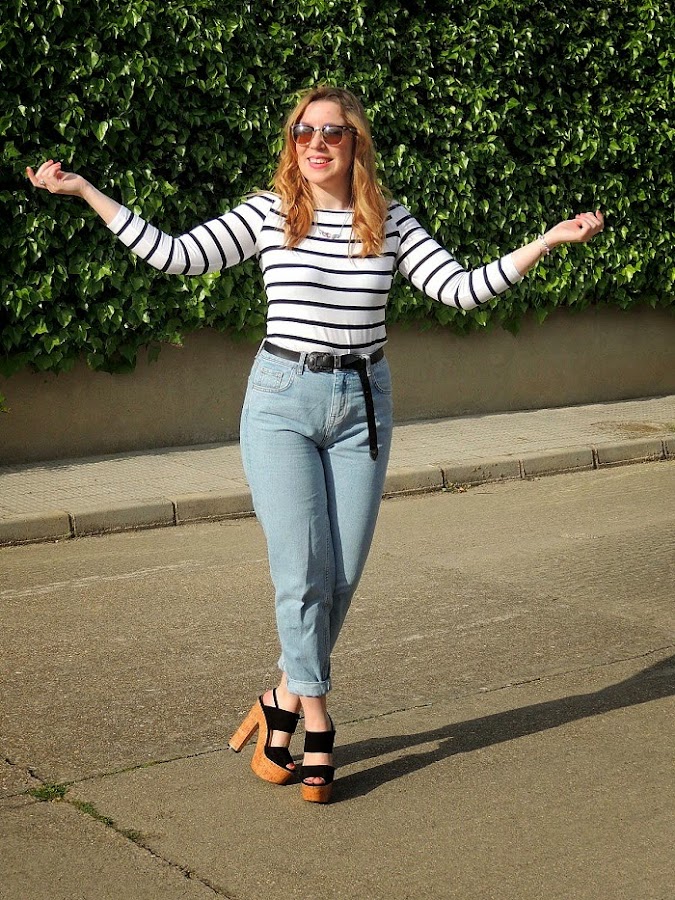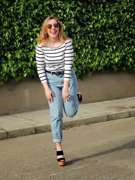 Firmemente creo que las camisetas de rayas y los jeans están hechos el uno para el otro. No pueden encajar mejor en todas sus versiones. En esta ocasión estrené camiseta básica de esta temporada con los hombros al aire que tan de tendencia están, mis mum jeans, taconazos y mi conjunto de Gold in love para dar un toque lady y especial al look. Y recordad que aún estáis a tiempo para aprovechar un pequeño descuento en cualquier producto de la tienda online usando el código CAOTIC LOVE, perfecto para encontrar el regalo ideal para mamá o darnos un caprichito :)