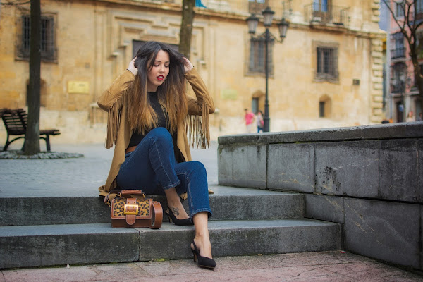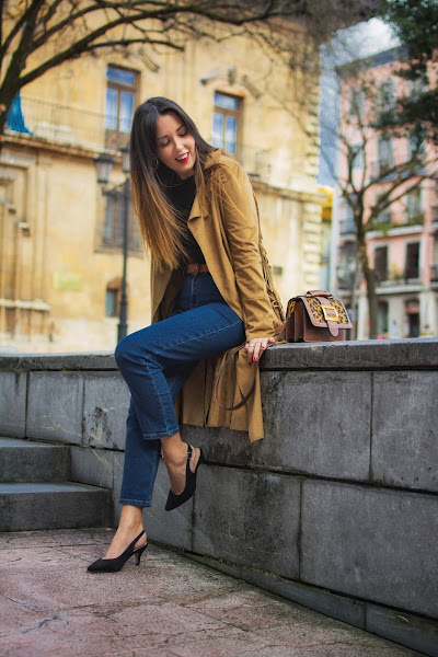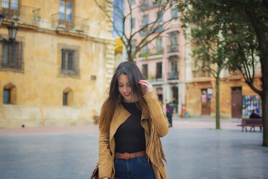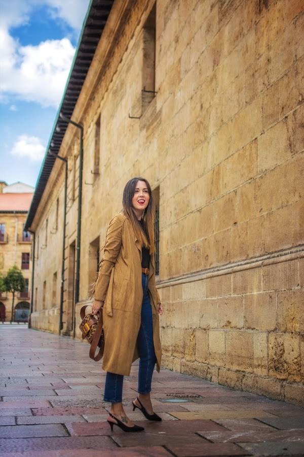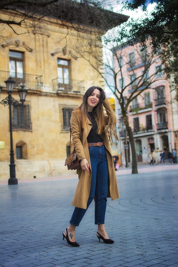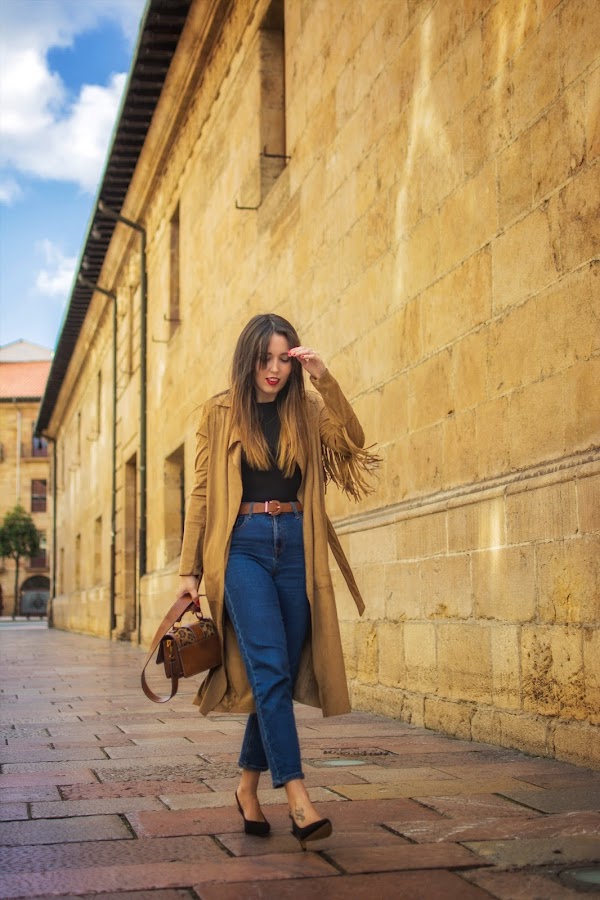 Hoy se lleva todo el protagonismo un precioso abrigo en color marrón, de ante con flecos, a modo de gabardina. Hace como unos dos años, lo encontré en uno de mis viajes a Madrid. Fue de esos amores a primera vista y no dudé en comprarlo. Hace unos días lo vi ordenando mi armario, aún tenía la etiqueta puesta pero cuando lo tuve de nuevo en mis manos, no solo me pareció igual de bonito, sino que hizo que recordase por completo aquel viaje y todos sus buenos momentos.
