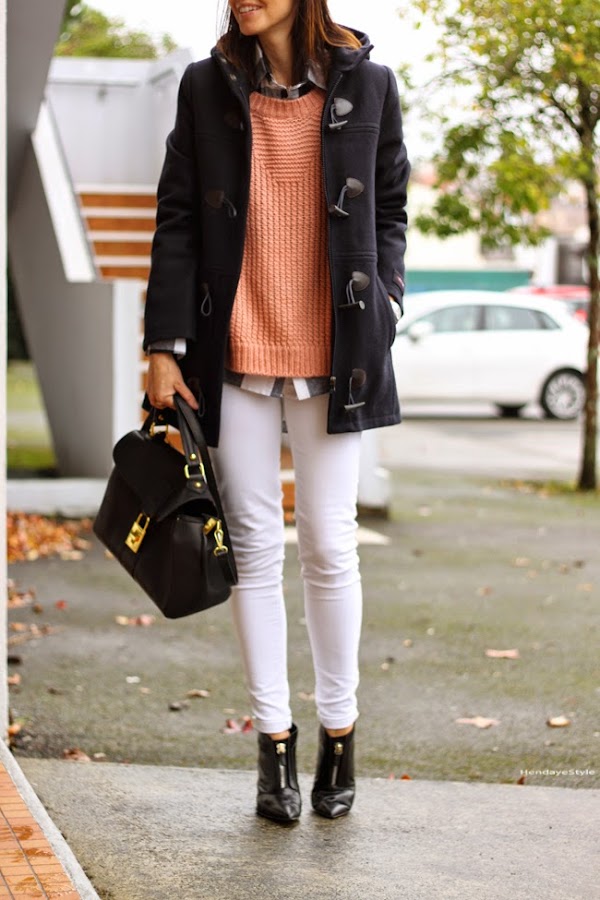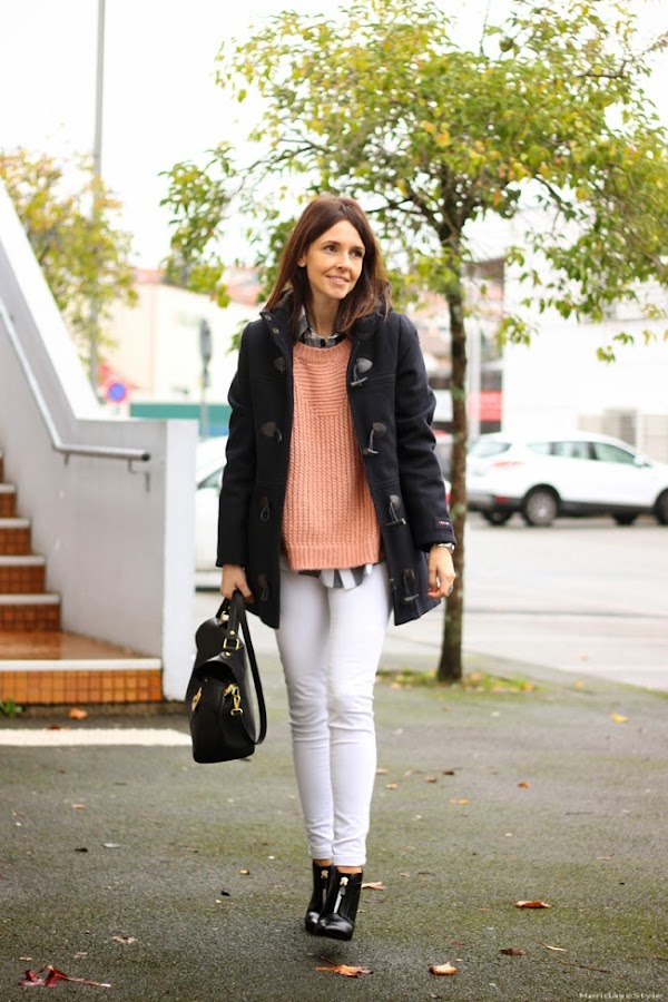No pude evitar quitarme el abrigo para enseñaros la espala que tanto me gusta de este jersey (a parte del color, soy muy de rosa...) combinado con una camisa de cuadros blanco y negro, perfecto!