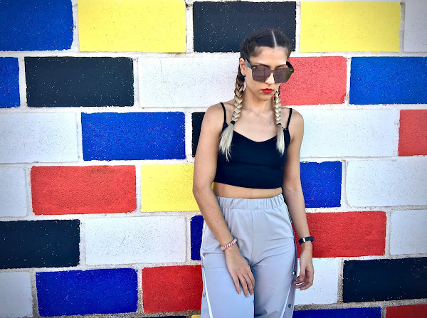 Hace poco os enseñé una "nueva" tendencia. Y digo "nueva" entre comillas porque hace unos cuantos de años (unos cuantos bastantes...) seguro que has usado estos pantalones, los track pants. Yo los usaba mucho y recuerdo que tenía varios de varios colores y de varias marcas, aunque el más visto siempre fue el de Adidas negro con rayas laterales. Pues bien, me alegro que os acordéis de ellos porque vuelven, aunque de manera reintentada, pero vuelven a ser tendencia. No hace mucho os enseñé uno en azul con líneas blancas donde lo combinaba con tacones. Esta vez os enseño uno de DRESSLILY, de color gris con una línea blanca y los famosos corchetes laterales.