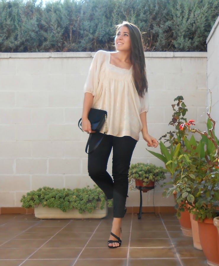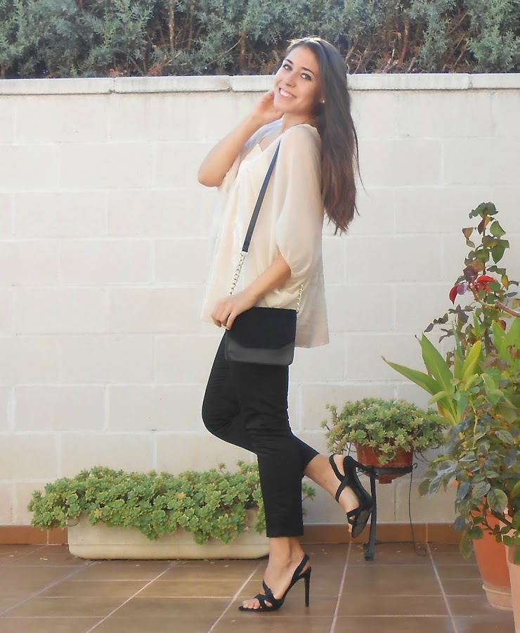 Cuando me da por una prenda, le busco mil combinaciones posibles y, la verdad, es que me la pongo hasta la saciedad. Me pasó con el skort blanco, me pasa con muchos bolsos y zapatos y, para no romper la costumbre, ahora, me ha dado por el pantalón negro que os enseñé el viernes pasado.