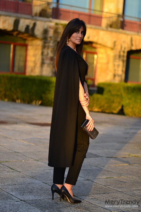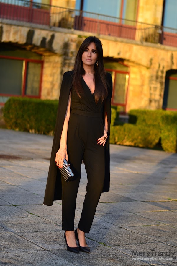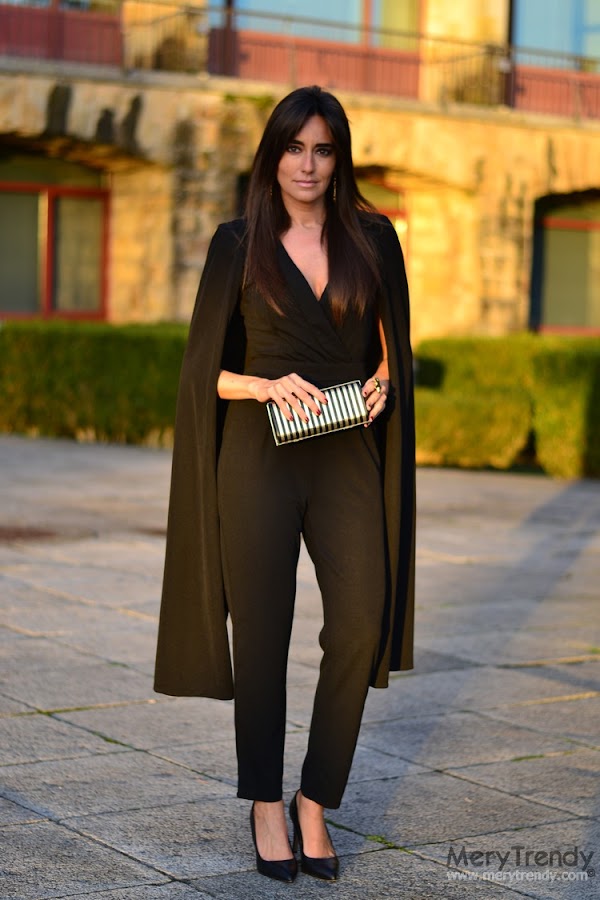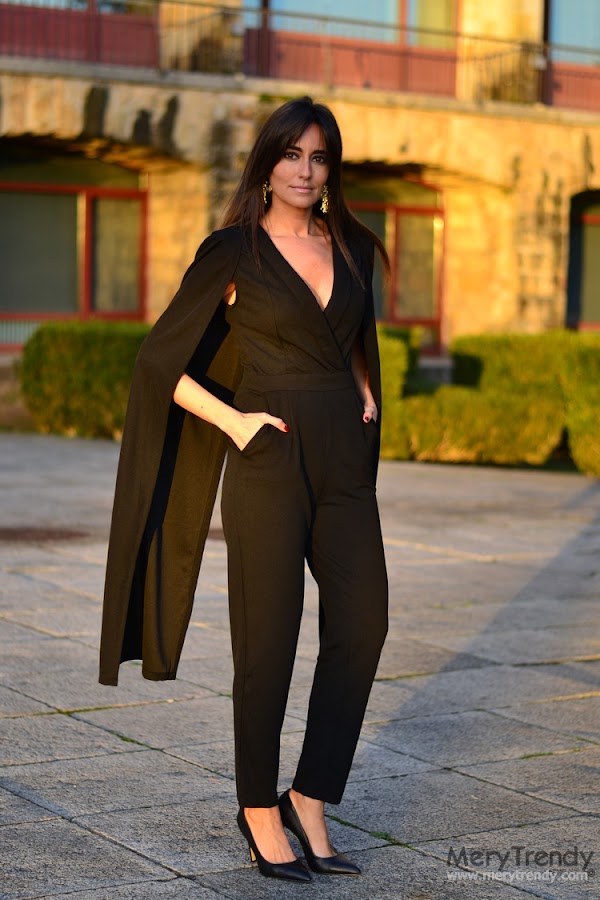 Hoy os acerco un look con un mono festivo en color negro, con escote cruzado en forma de "V" y originales mangas con efecto capa, de SheIn, como pieza central del mismo.
