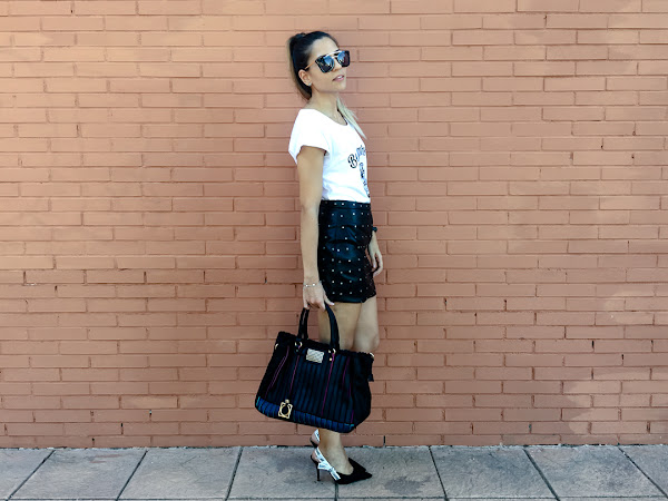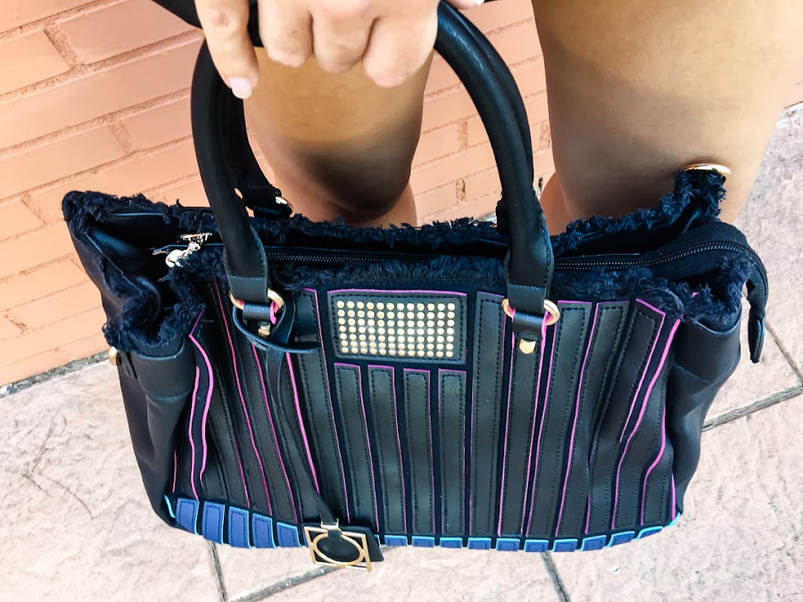 As complements I carry a bag from a local store, NATURALMENTE, which I love !! It is huge and combines black with various details in pink and blue !!