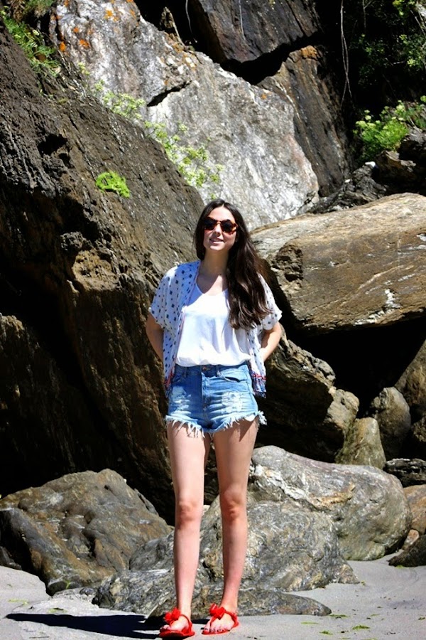 Kimono: Bershka / Shorts y camiseta: HyM / Sandalias: Elle / Gafas: Zara