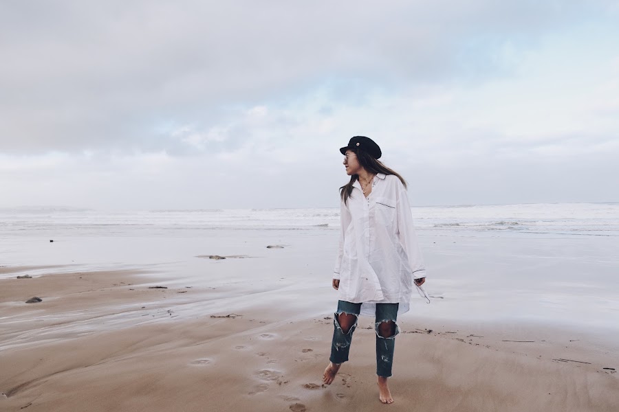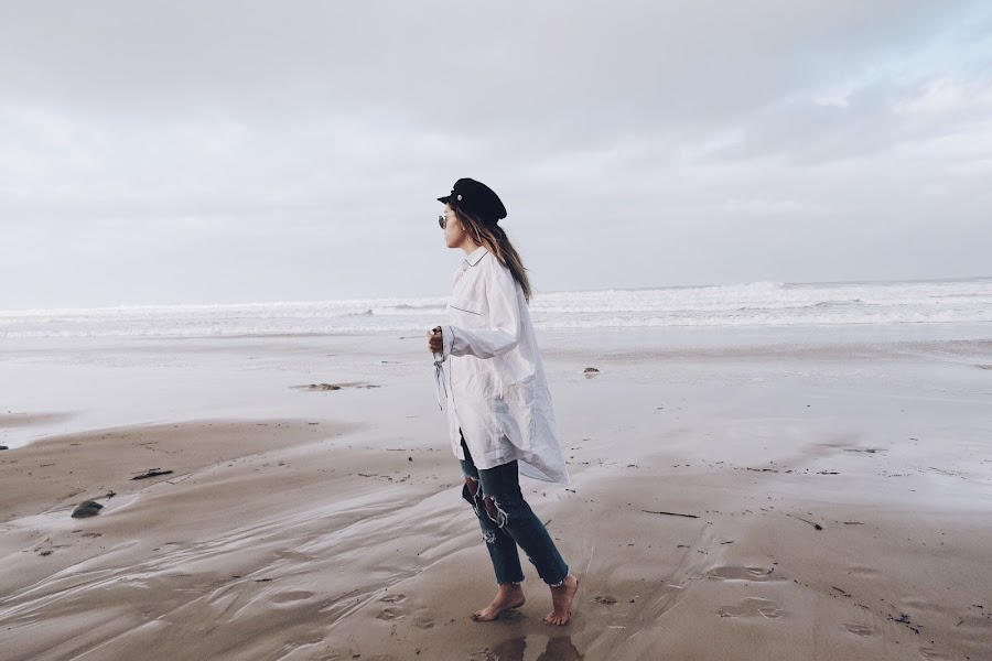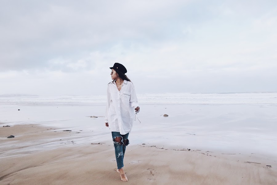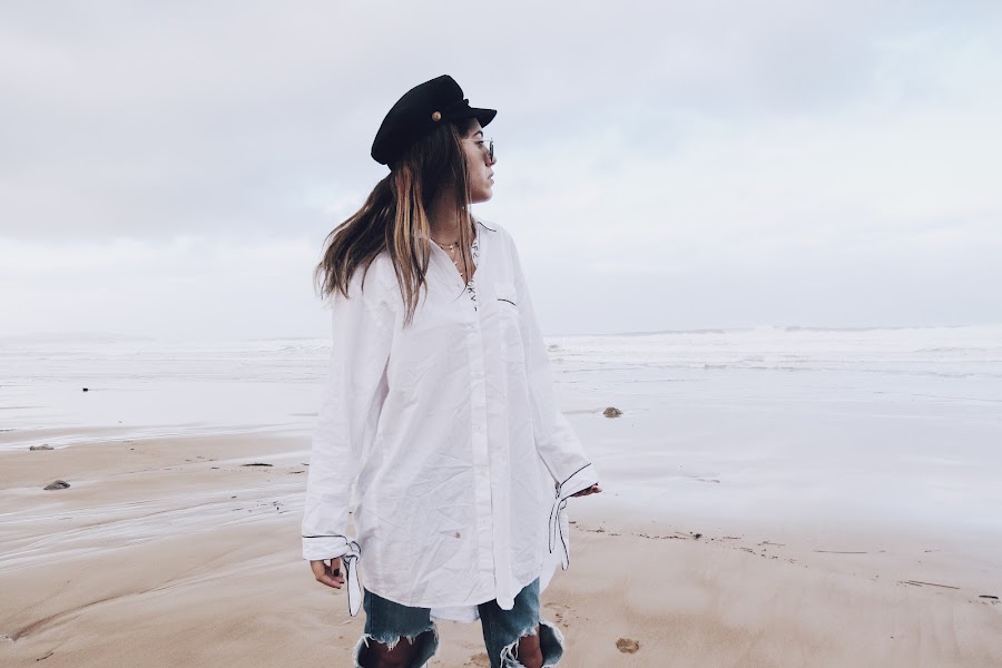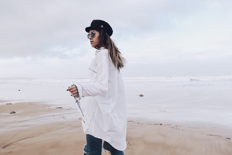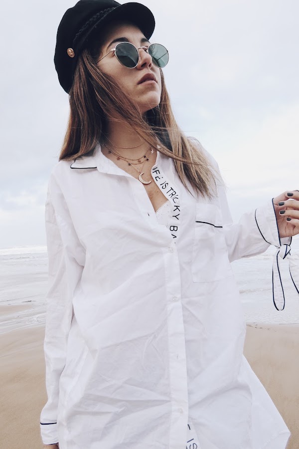 Un look muy sencillo, una localización espectacular y unos collares que son el centro del outfit.