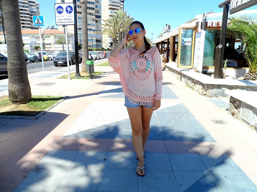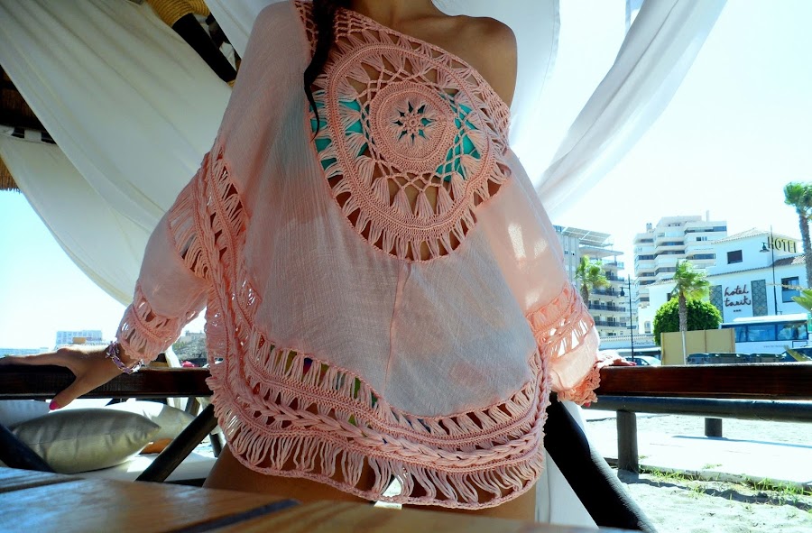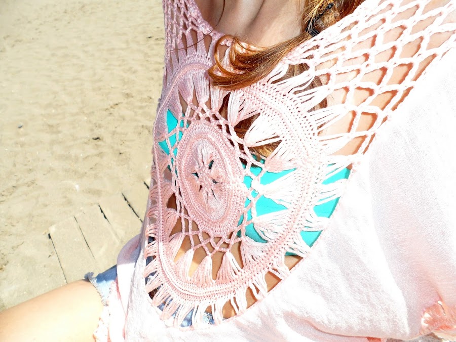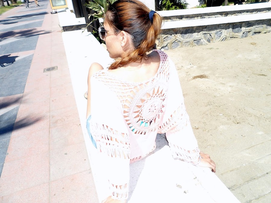 Ahora ya si, vamos al look que he usado para ir a la playa con una camisola con detalles de ganchillo en el pecho, espalda y mangas y un detalle trenzado en la parte baja.