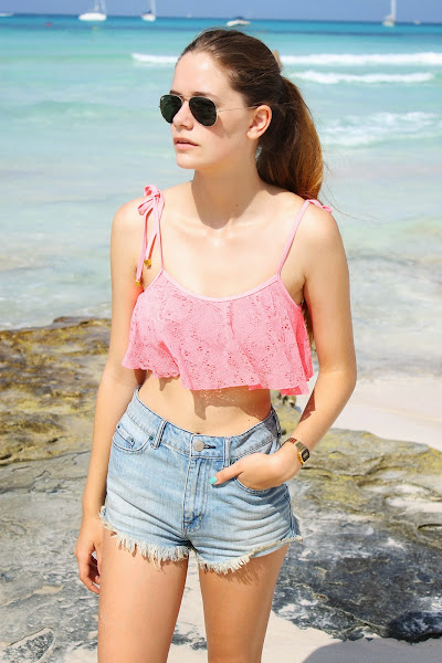 I sopouse many of you have seen the photo that I up yesterday to say to you "Good morning". Today I show you the look that I wear in the photo, in Es Trenc, Mallorca. The paradise! Is a simple look to go to trhe beach. You can see my basket with the blog name, it was a present of Xisca.
