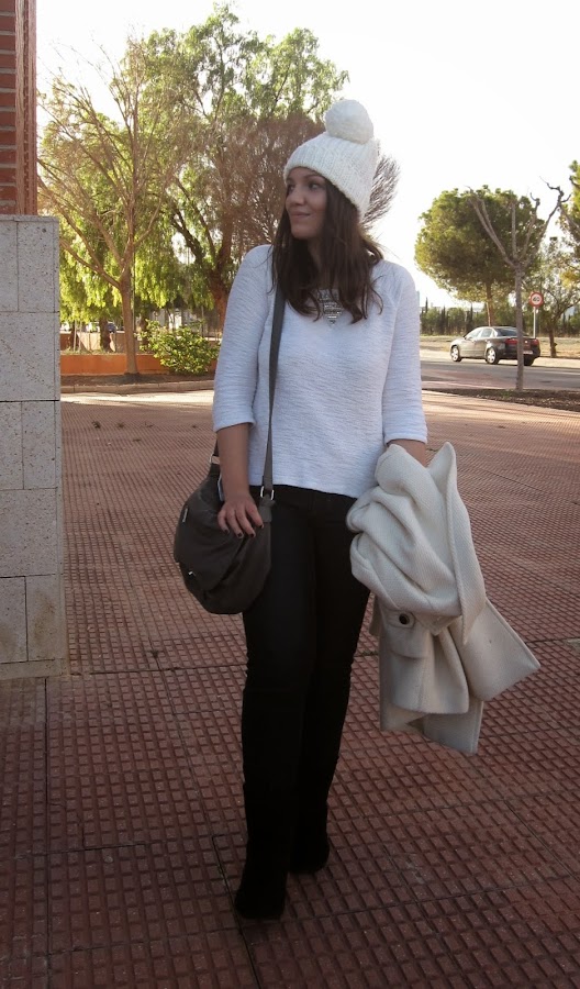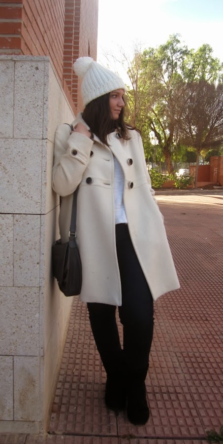 Honestly , I"m not one to bet on the white color in winter . But the truth is that I love this color, especially in the summer since it is perfect to enhance the tan skin. I think soon I will make a total white , I"ve been testing the mirror and the result got it bad ! The cap is a new acquisition of Primark , and that was to see the pompom and buy it ! Boots are also a new acquisition of Primark , and they were a chollazo . The truth is that at first threw me away because they are so cheap I did not trust a lot of quality, but I"m really thrilled and it was a good buy because they are super comfy and toasty . This look is perfect for going to uni or as in my case , going on errands all day , I always say we have to go divine death ! lol